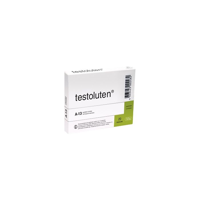 Testoluten is a dietary supplement with natural testicle peptides. It normalizes the function of the testicles by reducing their peptide deficiency and supporting protein synthesis within their cells. In the male reproductive system, aging changes occur mainly in the testicles. Testicular tissue mass decreases, and the level of male sex hormone testosterone is reduced, which reduces sexual activity. Problems with getting erections become more common with age. This usually gives significant psychological consequences to most men. Testoluten is recommended for every man over 40, especially those with low testosterone and libido, erectile dysfunction and male infertility.